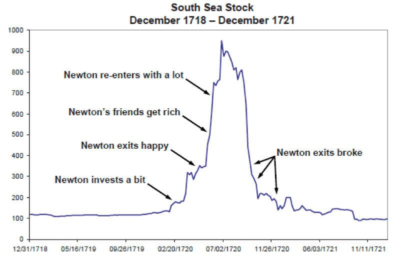 Newton decided in the early stages of that mania that it was going to end badly and liquidated his stake at a large profit. But the bubble kept inflating and Newton jumped back in around the peak.